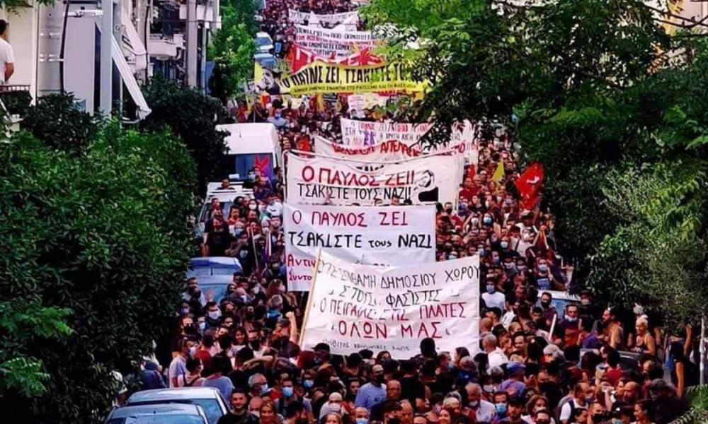 Ηεικόνα μιλάει από μόνη της... Στην χθεσινή διαδήλωση για την επέτειο δολοφονίας του Παύλου Φύσσα είναι προφανές πως τα μέτρα για τον κορονοϊό και οι κοινωνικές αποστάσεις είχαν πάει περίπατο.